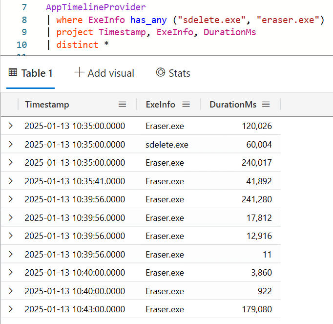 AppTimelineProvider shows both sdelete and eraser being run. I guess Eraser is still running in the background so that won’t really help us show that it was used to wipe something.