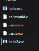 Well, I don’t know how it works, or why it does it; but with the help of some Copilot prompts I made a couple of binaries and did some testing. The first one, hello.exe, just prints hello world and has no embedded metadata. Just a simple C script compiled with GCC. The second, hello2.exe, has a .rc file which embeds the metadata I gave it. Simple enough.