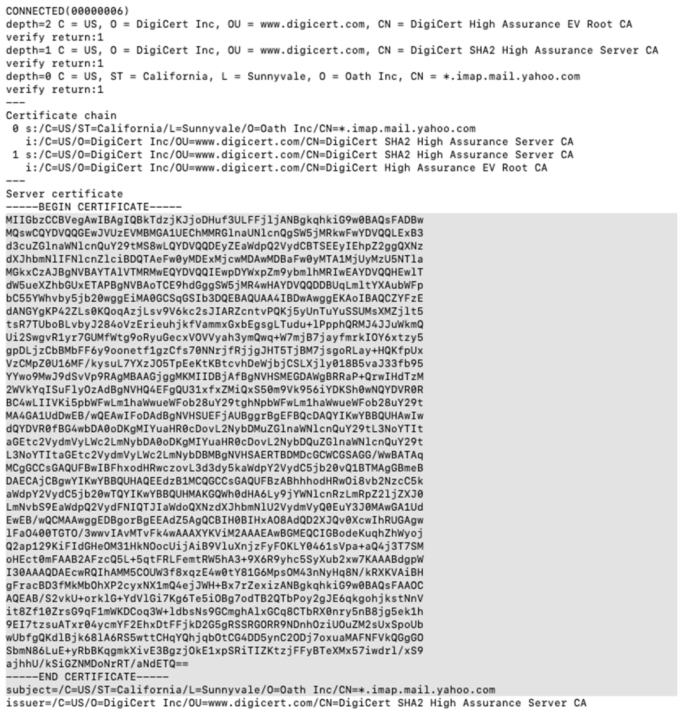 openssl s_client -connect imap.mail.yahoo.com:993