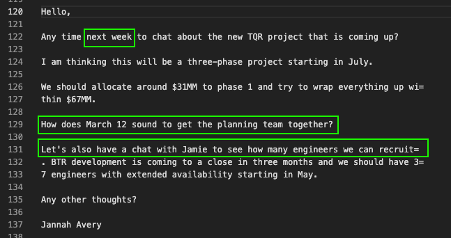 You are being asked to examine another email from an Oolleo employee to an outside address. This time, there are concerns that parts of the message body were altered after the message had been sent.