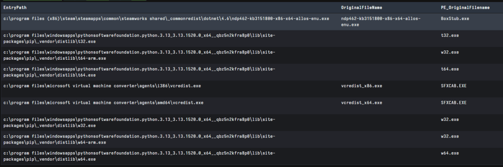 Queue further investigation – the cool thing about Velociraptor is we could take the list of executable paths and throw them into BinaryHunter to parse the PE header and check the embedded OriginalFileName.